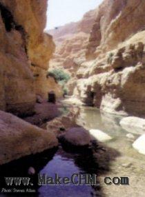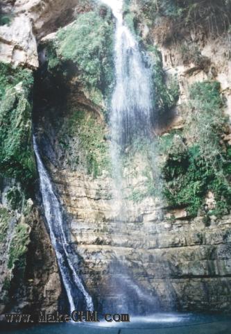 “大卫从那里上去,住在隐基底(En-gedi)的山寨里。”-- 从玛云旷野南边的亚拉巴,大卫逃到隐基底的山寨居住。隐基底位于死海西岸,西弗之东约25公里,现在的废墟在高于死海面约200公尺的一处山腰平台上,四面都是危崖绝壁,山洞很多,但在这里可以找到可以找到沙漠绿洲,有泉水自岸壁涌出,水量甚丰。请看下图就可知晓:
