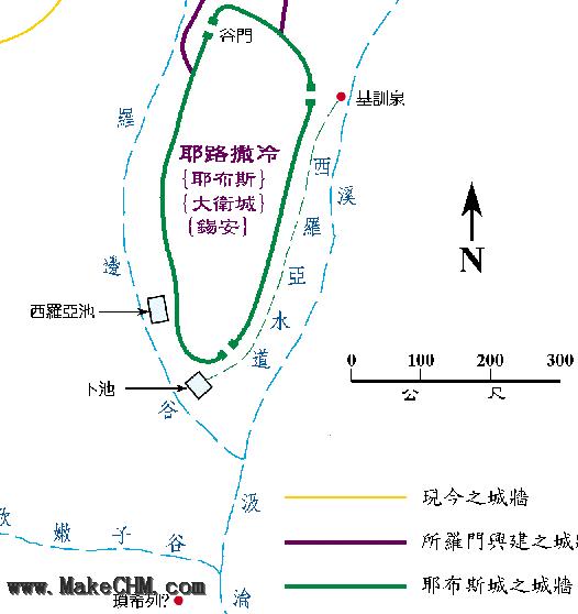 图二是大卫时的耶布斯城。我把耶布斯城的部分(就是大卫城)放在这里: