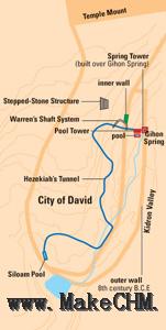 “大卫和跟随他的人到了耶路撒冷(Jerusalem),要攻打住那地方的耶布斯人(Jebusites)”-- 耶路撒冷在哪里?请看图一。 圣经很早就提到耶布斯人,在创十:16说耶布斯人属于迦南一族。上帝应许以色列人的迦南地被称为“。。到美好宽阔流奶与蜜之地,就是到迦南人、赫人、亚摩利人、比利洗人、希未人、耶布斯人(Jebusites)之地。”(出三:8)约书亚带领以色列人进迦南后,书九:1 和十一:3 提到耶布斯王联合其他迦南王与以色列人争战。书十五:8 提到耶路撒冷(当时称为耶布斯)是犹大支派地业的边界有一段是贴近耶布斯的南界,但犹大支派不能把住在耶路撒冷的耶布斯人赶出去,耶布斯人在耶路撒冷与犹大人同住(书十五:63)。书十八:28又说耶路撒冷是分给便雅悯支派为业的一座城。士一:21 说便雅悯人没有赶出住耶路撒冷的耶布斯人,耶布斯人仍在耶路撒冷与便雅悯人同住。士十九章提到的那个利未人带着妾来到耶布斯的对面,没有进去住宿,因为那是外邦人的城(士十九:12)。以后我们再看不到耶布斯,直到这一节。考古学提供了什么资料帮助我们认识耶路撒冷呢?