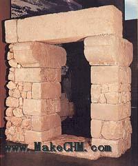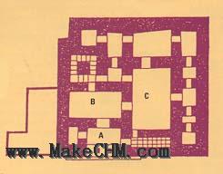 在米吉多的所罗门宫殿的平面图(与大卫的宫殿相似) 宫殿入门(A)腓尼基式柱子