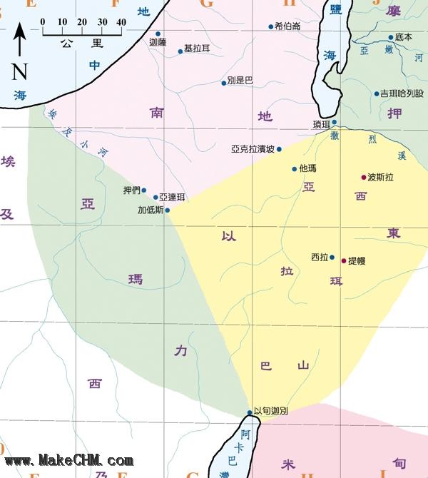 以东地位于亚拉巴谷的两侧,在东边的是西珥山区,北起自撒烈溪,南与米甸交界(米甸是亚伯拉罕的庶子),东为沙漠。西侧则呈一三角形,东边的尖端在加低斯,西北与南地为邻,西南与亚玛力人为邻。以东很早就有王国的组织,他们虽然与以色列人是兄弟,但长期与以色列人为敌。他们后来称为以土买人。以扫的孙子亚玛力,他占据了原亚玛力人之地,日后的亚玛力人可能是他们与原地的人种混合而成。他们主要的集中地可能是在以东和埃及小河之西,一片略似菱形的山地,他们也经常在南地出现。(完)