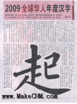 2009年,亚洲周刊选择“起”字作为全球华人社会的年度汉字,因为它见证了全球金融危机后中国崛“起”的经济实力,从索马里打击海盗到哥本哈根会议的环保减排,都展现中国在全球必须负“起”责任,呈现全球华人社会的突破;而“起”字也描绘出两岸三地房价大“起”的狂飙与民怨可能四“起”的焦虑。。。。(请点击下图读全文)