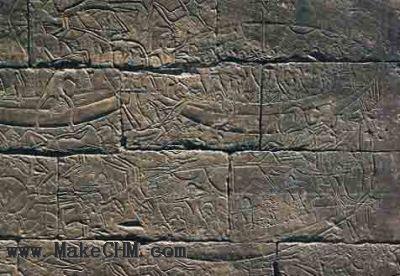 Medinet Habu Temple 的墙壁上,描绘了兰塞三世在 1175BC 与非利士人展开的激战。