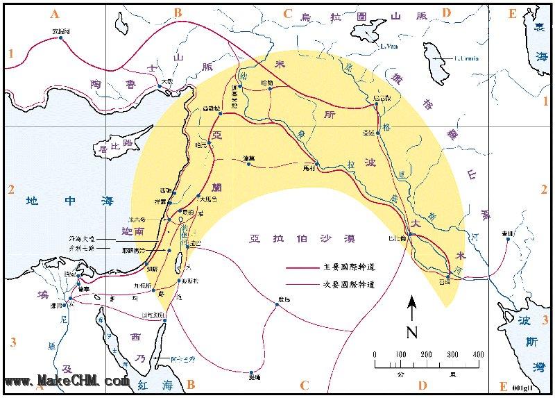 沿着腓尼基的海岸,也有一条国际大道,南起自米吉多,往北可到小亚细亚。