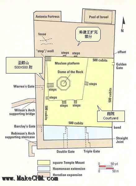 square Temple Mount 500cubits X 500cubits (one cubit 约 20.8寸)