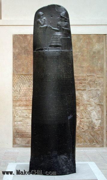 (图十)八尺高的黑色闪长岩石碑上刻有罕模拉比法典(282法律条文)赫人侵入(The Hittites Invasions,1600BC-1200BC)
