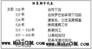 7. 古列王三年(主前536年),被掳巴比伦结束了,一些流亡者在所罗巴伯领导下回到了耶路撒冷(见以斯拉记1、2章)。你可能记得,共有三次被掳到巴比伦,也有三次回归。见所附图表对三次回归的罗列。