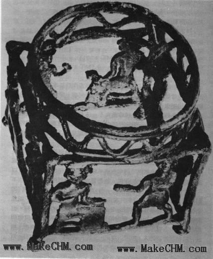 | 献祭用的青铜架,圆形显示行政管理拜祭者(祭司)向坐着的神明献礼;这是米吉多於公元前十世纪的遗物。 |