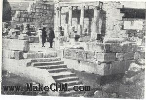這個百夫長為猶太人建造的會堂在迦百農(路七:5節),耶穌常常就在這會堂教訓人並且醫好被鬼附的人(可一:21-23節),在1905年一隊德國探險家發現一個會堂的遺址,證明是主後第四世紀所建築的,在它的地板下面又發現一個更古老的會堂,據想就是耶穌施教的那個會堂(可一:21;路七:5),靠著西面的牆有石的座位是文士和法利賽人所坐的地方,講臺是在北邊盡頭處,從圖中可以看見主耶穌所站的地方[參下圖]。