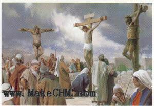 釘十字架的地方是在各各他山,這個名稱是由於這座山的形狀像一個骷髏。到了那裏罪犯要被綁在他的十字架上,釘子穿過手心,雙腳綁在十字架上。為了止痛,罪犯要喝一種由耶路撒冷富有的婦女們為行豫備的藥酒。這個藥酒的杯子交給了耶穌,可是衪不肯喝,因為衪定意要接受死亡最痛苦最陰暗的一面,並不願躲避任何的痛苦。