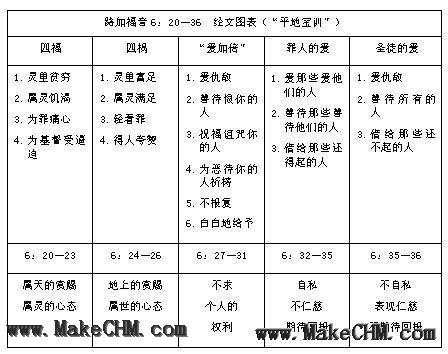 7. 6:20-26的中心是说基督的门徒对神和对生活的态度是追求属灵的和永恒的事;而罪人(或属世的基督徒)则追求属世的和暂时的东西,它们只能满足现在。