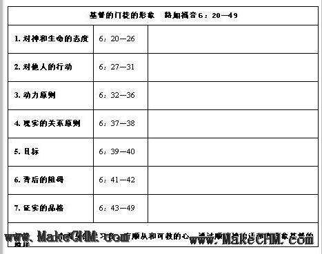 *本课的教导重点(在教师手册中)将着重讲路加在“平地宝训”中所展现的基督门徒的形象(6:20-49)。(路加后来在14章谈到作门徒的条件)