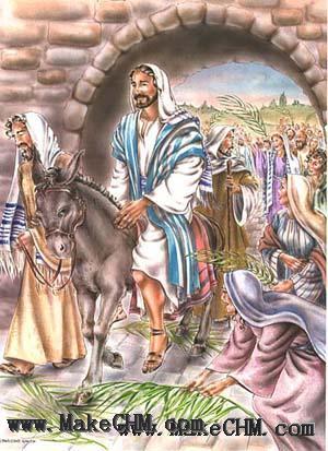 12 第二天有許多上來過節的人、聽見耶穌將到耶路撒冷、 13 就拿著棕樹枝、出去迎接他、喊著說、和散那、奉主名來的以色列王、是應當稱頌的。 14 耶穌得了一個驢駒、就騎上。如經上所記的說、 15 『錫安的民哪、〔民原文作女子〕不要懼怕、你的王騎著驢駒來了。』 16 這些事門徒起先不明白。等到耶穌得了榮耀以後、纔想起這話是指著他寫的、並且眾人果然向他這樣行了。 17 當耶穌呼喚拉撒路叫他從死復活出墳墓的時候、同耶穌在那裡的眾人、就作見證。 18 眾人因聽見耶穌行了這神蹟、就去迎接他。 19 法利賽人彼此說、看哪、你們是徒勞無益、世人都隨從他去了。 此段經文亦見於太廿一:1-11,可十一:1-10,路十九:29-38,這是在衪死之前的那個禮拜天,耶穌作為歷久所預言的彌賽亞而來世上,三年之久衪用不斷的行程和神蹟,用十二門徒和七十人的行程和神蹟,向全國宣告衪自己的身份,衪知道那些領袖們已經決定將衪處死,衪已經準備受死,衪的時候到了,拋棄一切的防備,以一種偉大公開遊行示威的姿態,作為最後一次喚起聖城注意,衪在那些期待的群眾高喊哈哩路亞與和散那的歡呼聲中進城;這是一件能叫石頭歡呼起來的重大事件,(路十九:40),百姓是歡樂到極點,他們想解除痛苦的日子就要到了,耶穌騎著一匹驢駒,因為有預言這位彌賽亞君王要這樣到來(亞九:9)。