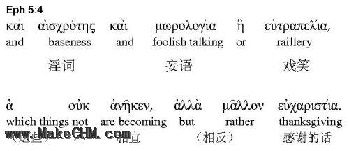 “淫词、妄语和戏笑的话都不相宜,总要说感谢的话。”-- 原文是: