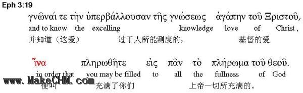在19节下,保罗说:“便叫上帝一切所充满的,充满了你们。”