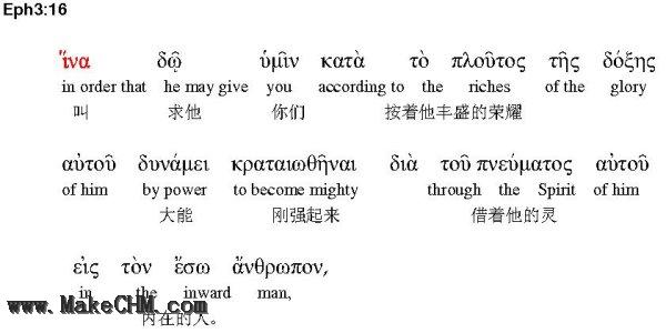 虽然只有短短四节,我们却不容易知道保罗为信徒祷告的有多少件事。所以,我要把原文(从左到右)放在这里,然后分析它的句子结构:
