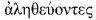 在《和合本》和英文 KJV,NIV,RSV,NASB 等版本都翻译为speaking the truth (说诚实话),但有圣经学者认为这个字也可以翻译为“坚持真理”(adhering to the truth)或“活出真理”(living the truth),《新译本》的翻译就是这样,作“却要在爱中过诚实的生活”。我比较倾向于“说诚实话”的翻译。