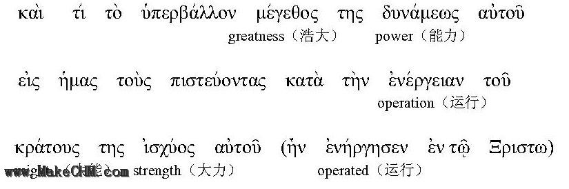 基督教信仰不只是有永生的盼望,有丰盛的基业(福气),保罗要信徒知道我们的信仰不是纸上谈兵,一大堆真理教义,以致变得死气沉沉古板僵硬。主耶稣说:“我来了,是要叫羊(注:或作"人")得生命,并且得的更丰盛。”(约十:10)既然是信徒的生命是丰盛的,怎么会变成死气沉沉呢?所以保罗不满足于说“他向我们这信的人所显的能力是何等浩大”,他还要在“能力”这个话题上进一步发挥。