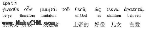 我已经说了,这是总结弗四:31-32的“。。以恩慈相待,存怜悯的心,彼此饶恕。。”因为这些都是上帝待我们的方式,上帝给我们作了一个榜样,我们也要作“上帝的效法者”(原文直译)。什么叫“效法者”(imitators)?希腊文 mimetes 有特别的含义: