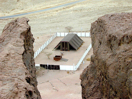 三十三7~10 营外之会幕 律法规定的制度(二十五~三十章)是要建筑神可以住在他们中间的圣所。但这时主已不肯在他们中间居住,反要另设会幕于营外,使摩西能够得到引导。没有事务要在这帐幕里面进行,但耶和华会在云柱降下时,在会幕门前与摩西会面。此地是为先知而非祭司事工而设的,这里没有献祭,也无祭坛。后来立于营之中央的圣幕(二十五章及下所述,安放约柜的帐幕)建成之后,也有了会幕的功用。