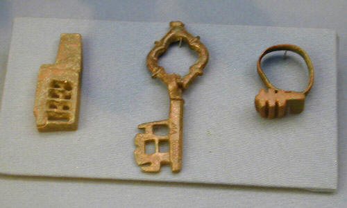 一18 在旧约(诗九13,一○七18)和犹太文学中,「阴间的门」是指死人的居所,因此等于死亡的权柄;持有通往这些所在之钥匙的人,就是能统管它们的人。在皇宫里,有钥匙的人是宫中极有权柄的人,如:赛二十二21~22;钥匙代表有权柄管理他能打开的东西,而犹太典籍讲到,神将钥匙交给雨……等。犹太文学说,神有权柄管理死亡和阴间的门(所罗门智慧书十六13)。* 基督的权柄在死亡之上,因祂已经复活;当跟随祂的人可能面对死亡之时,这是很大的鼓励。