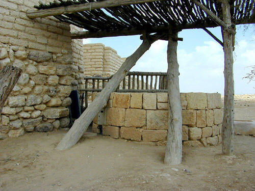 十九18 各各他有几条约十呎高的木柱竖在那里,若要行刑,随时都可以用。木柱的顶端,或稍微下来一点,有一道凹槽,囚犯被绑着或钉在十字架的横木上之后,便将横木放进去。