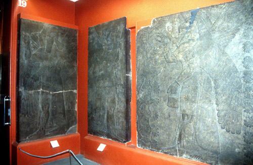 二6 尼尼微宫殿 「无可匹敌的宫殿」,或今日所称「西南宫殿」,是西拿基立王于主前七○三至六九一年间所建,由许多互相连结的房间和宫廷所构成(估计有1635 x 786呎,可以容纳二十五座美式足球场)。最靠近御座的地方,有石灰岩雕刻装饰的外墙,巨大的雕像(有翼的公牛,有鱼鳞的巨人)以及精细的军事战役浮雕。功能更实用的外院,则没有煞费苦心的设计或雕像。