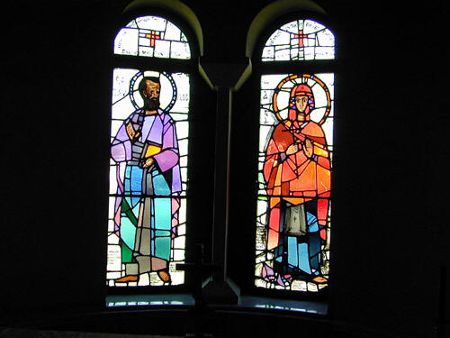 在腓立比教堂内,保罗与吕底亚的彩绘玻璃
