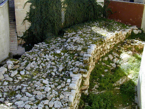 三27 俄斐勒的墙 俄斐勒的墙从俄斐勒朝西南沿汲沦溪谷延伸,直达水门。在较早的时代,这段城墙是在山坡半腰之处,但尼赫迈亚把它迁移到山脊的上面。考古学家发掘戴维城时,也找到了这城墙的一些片段。