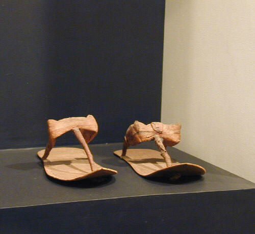 七23 锁炼 埃及和美索不达米亚的艺术经常都描绘俘虏被锁炼捆绑。埃及底比斯的兰默塞昂(Ramesseum;兰塞二世的殡葬庙)就有这样一幅浮雕,刻着来自亚洲、衣索匹亚、中非洲的俘虏在兰塞二世面前游行而过。兰塞三世位于梅迪内哈布之殡葬庙墙上的雕刻也有一幅类似的场面,但俘虏是迦南人和非利士人的囚犯。