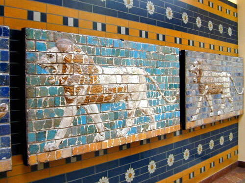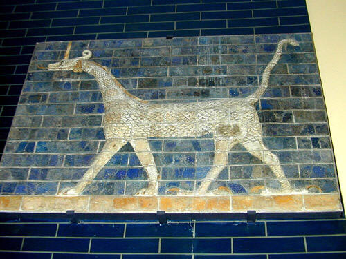 一5 古代近东作为宝座守卫的有翼直立活物 古代近东艺术中,有人脸面的有翼活物为数极多,宁鲁德和尼尼微的亚述王宫和庙宇之中尤其常见,但大部分都是四足的。例子包括了在亚述王西拿基立的宁鲁德王宫遗址中所发现的几个巨大守卫像。一个是有人头的有翼公牛,另一个则有狮身和人面。亚述纳瑟帕建于卡珥胡的王宫则有这一类的雕像,有计划地安置在王宫和庙宇的入口和宝座所在的房屋之中。其巨大身材(高达八呎)特意令一切进入的人心生畏惧。叙利亚腓尼基的艺术也有类似之有翼狮身人面兽像(具有狮子的身体、鹰的翅膀、人的头)。直立(两足)的复合性活物则较少左证。位于宁鲁德的宁努他庙有一些四只翅膀的鹰头人身像。而阿契美尼德的波斯图像所描绘的,则是具有四只翅膀、人头、牛足牛蹄的直立活物。