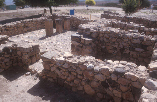 三2 巴力的柱像 神庙和庙宇经常将立石安置在摆设偶像的壁龛中。这些石块上有时刻着神明的浮雕,但大部分都是空白一片。以色列很多地方的挖掘,如:但、基色、阿拉得,都找到了这种石头。