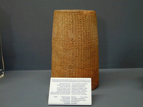 五十43 主前五四○至五三九年的拿波尼度 拿波尼度惧怕逼近的波斯大军,主前五四三年从位于阿拉伯半岛的陪都提玛迁回巴比伦。他聚集了帝国各地的神像(古列圆柱的记载),并且十年以来首次举行了尊崇玛尔杜克神的新年节期。