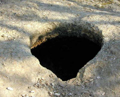 二13 破裂的池子 水库通常是在成分为石灰岩的山中开凿。蓄水池内部必须漫上石灰灰泥,才能将雨水引入池中。但这些水库往往会出现裂缝,以致存水漏出,农夫丧失维生的必需品。